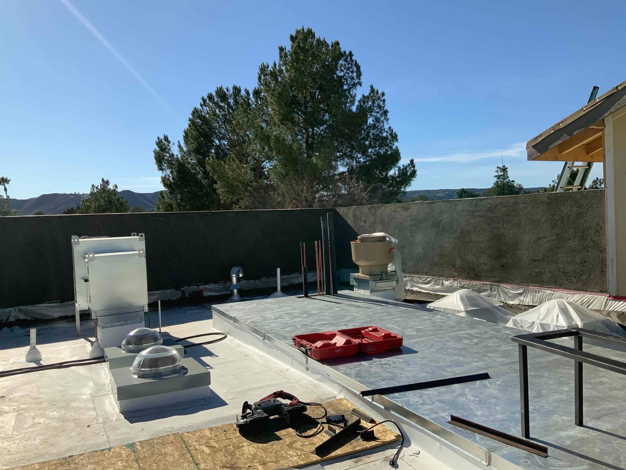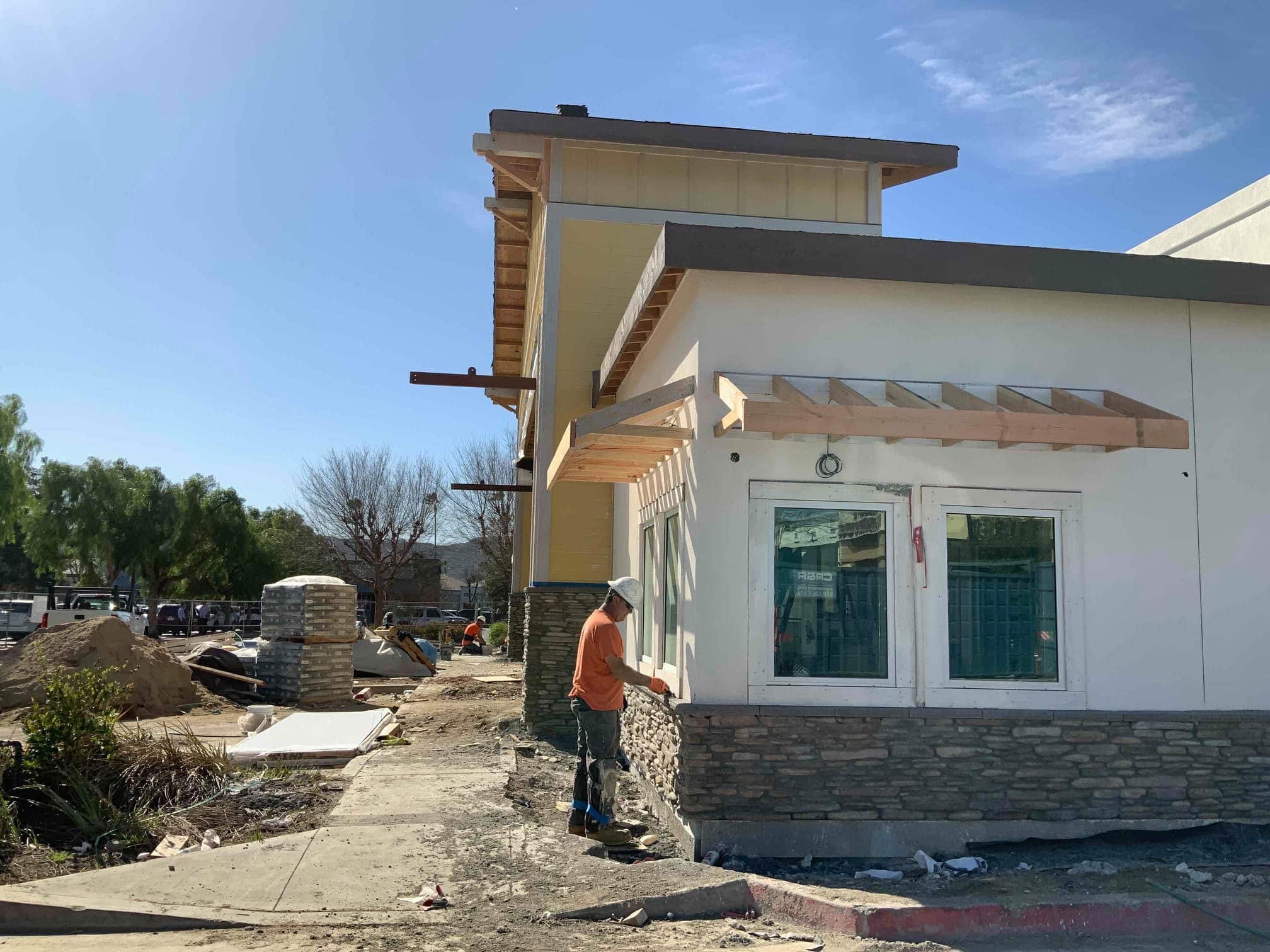 Phil’s BBQ’s newest location in Temecula, CA, is closer to opening. We’ve completed the exterior stucco and siding, finished the TPO roof, and loaded the equipment onto the roof. Stainless steel and FRP, keg and walk-in cooler installation, and the patio overhang are also complete. Tile in the bathrooms and concrete roof tile work have commenced. Flooring and landscape work to start in the coming weeks.