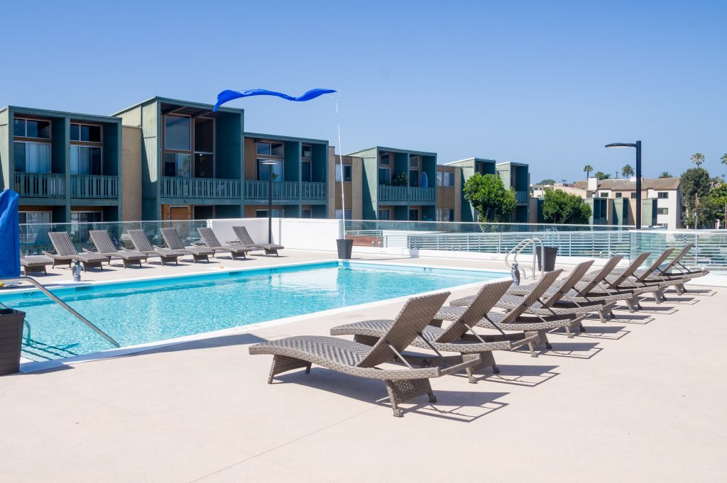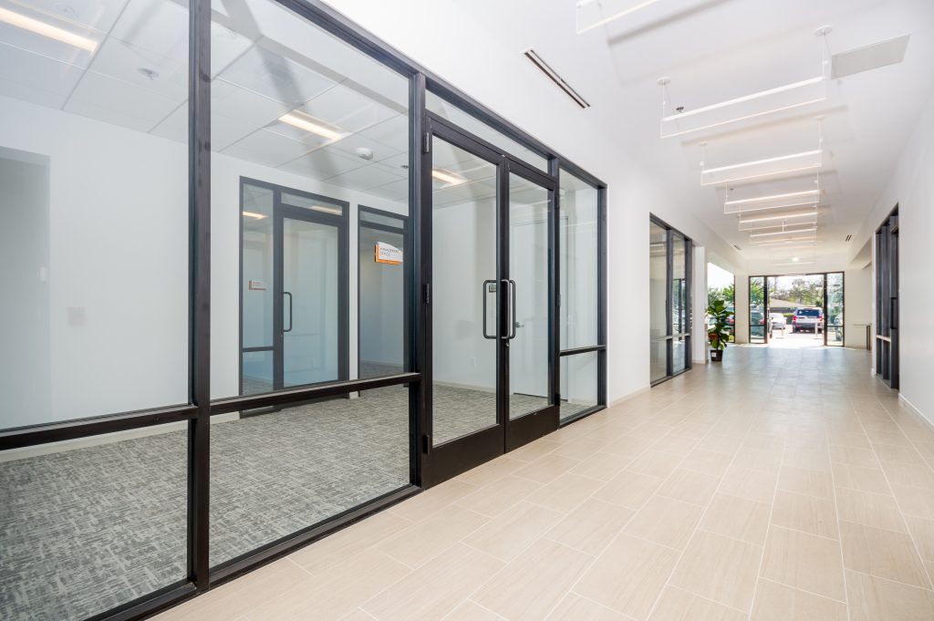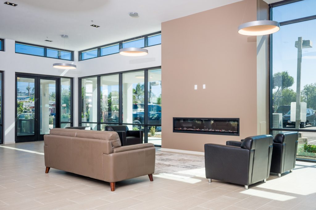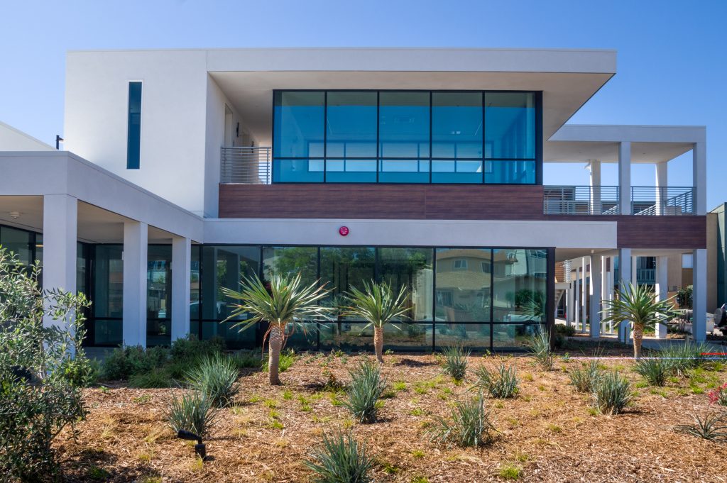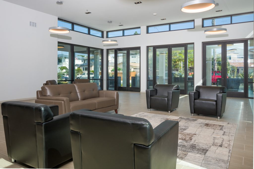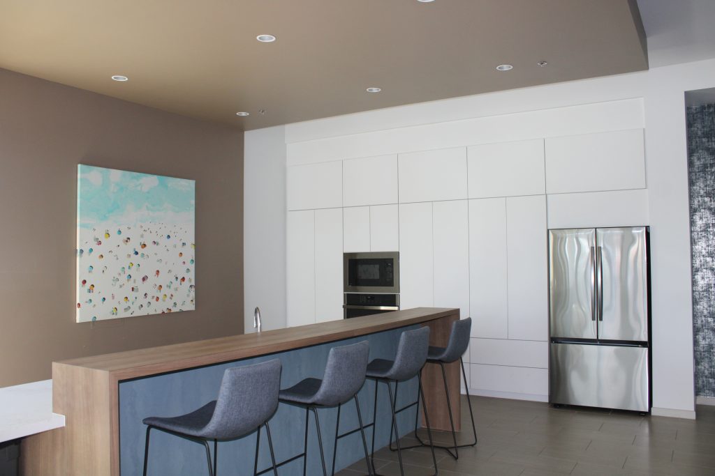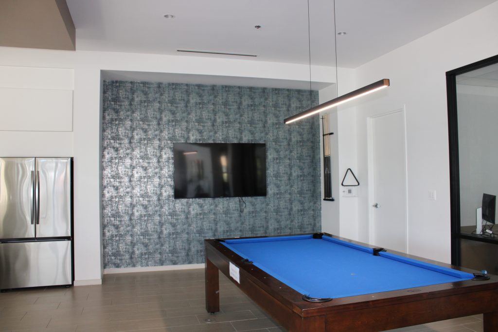 Cedar Shores features a ground-up podium construction of a modern two-story clubhouse. The building includes a fully equipped fitness center, multiple full-service kitchens, restrooms, and a second-story pool with an elevated overlook. Designed with contemporary architectural elements, the clubhouse showcases clean finishes and expansive storefront glazing along the main entry, creating a bright and welcoming environment.