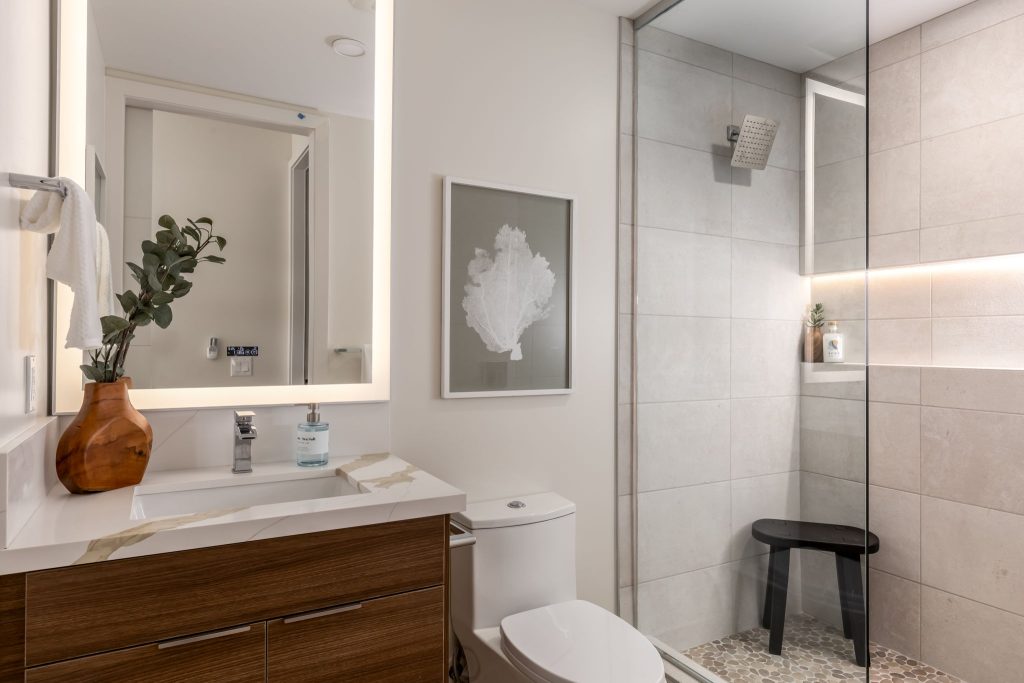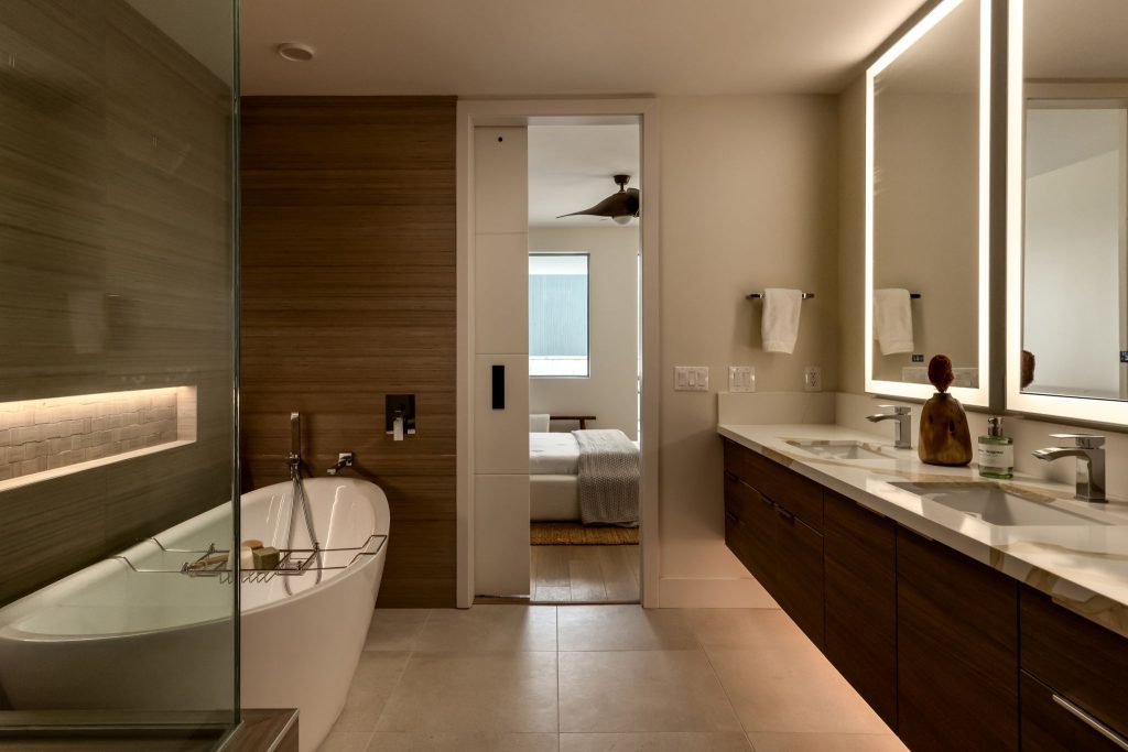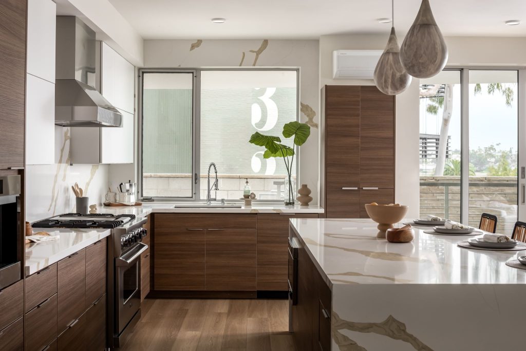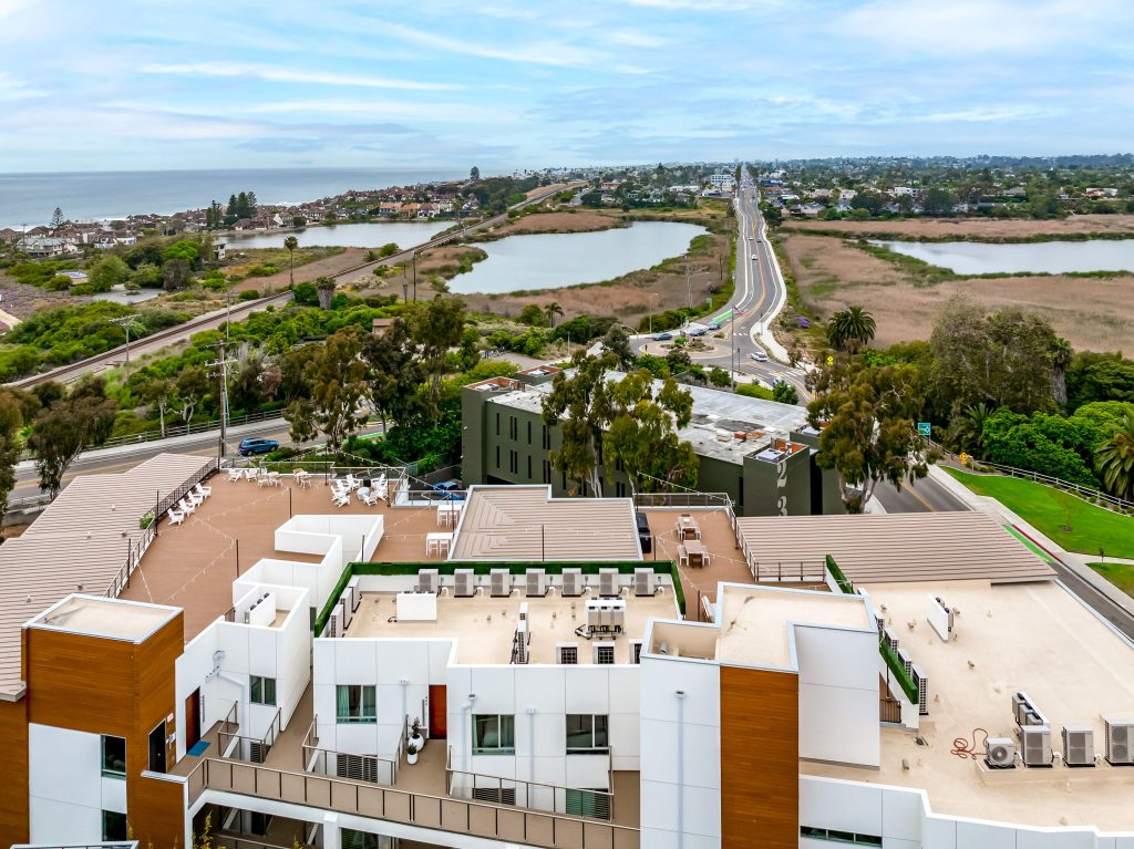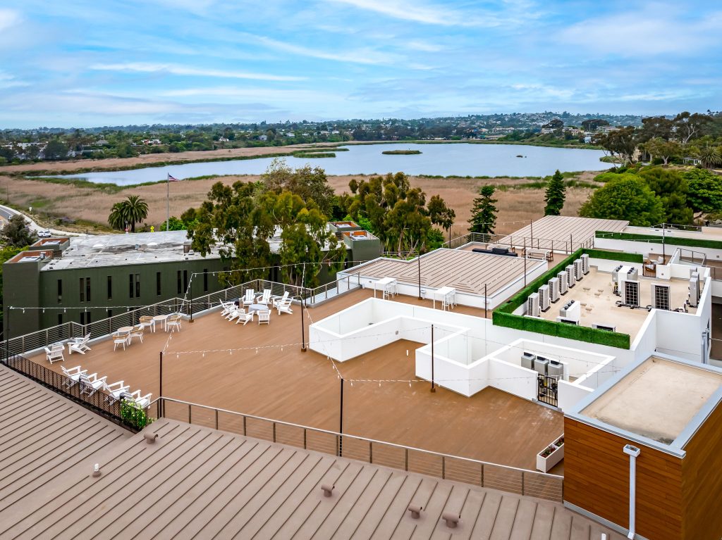 This ground-up development features a luxury 17-unit, three-story residential building constructed over a semi-subterranean podium parking garage. The project included major utility upgrades to support long-term performance and efficiency. Designed with a modern architectural theme, the building showcases contemporary interior and exterior finishes, high-end furnishings, and multiple large private patios with expansive sliding glass doors. The rooftop mezzanine provides a premium amenity space, complete with planters, barbecue stations, and comfortable seating areas for residents to enjoy.