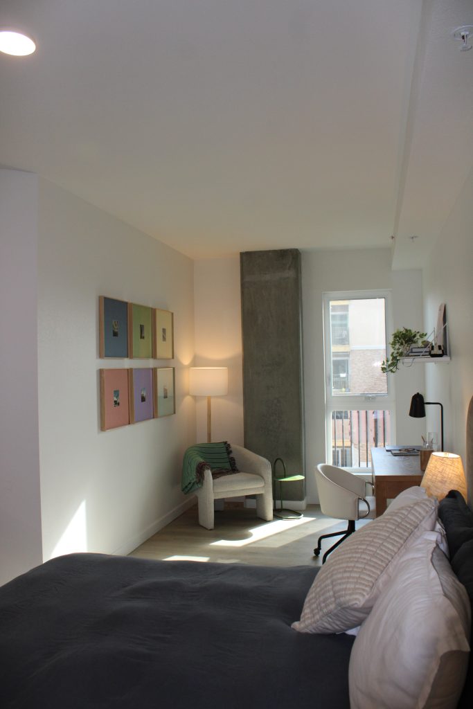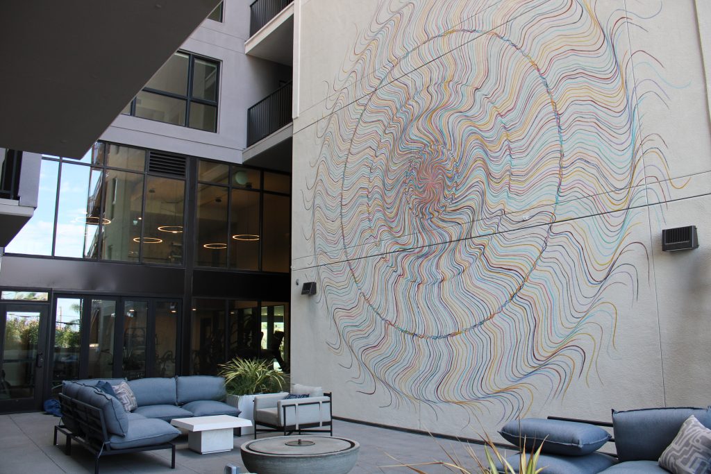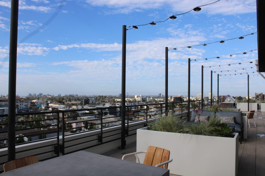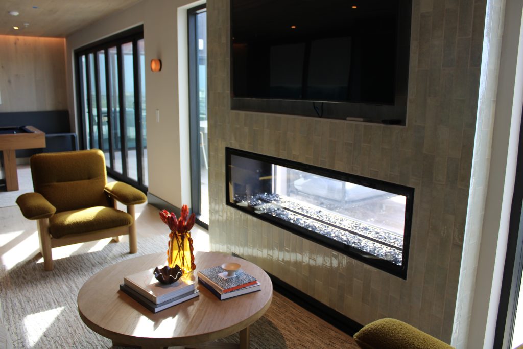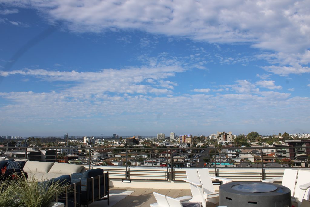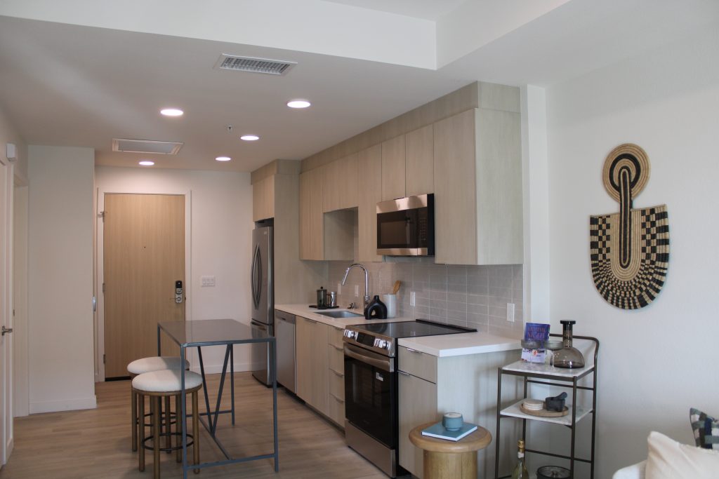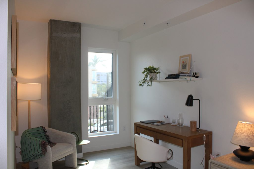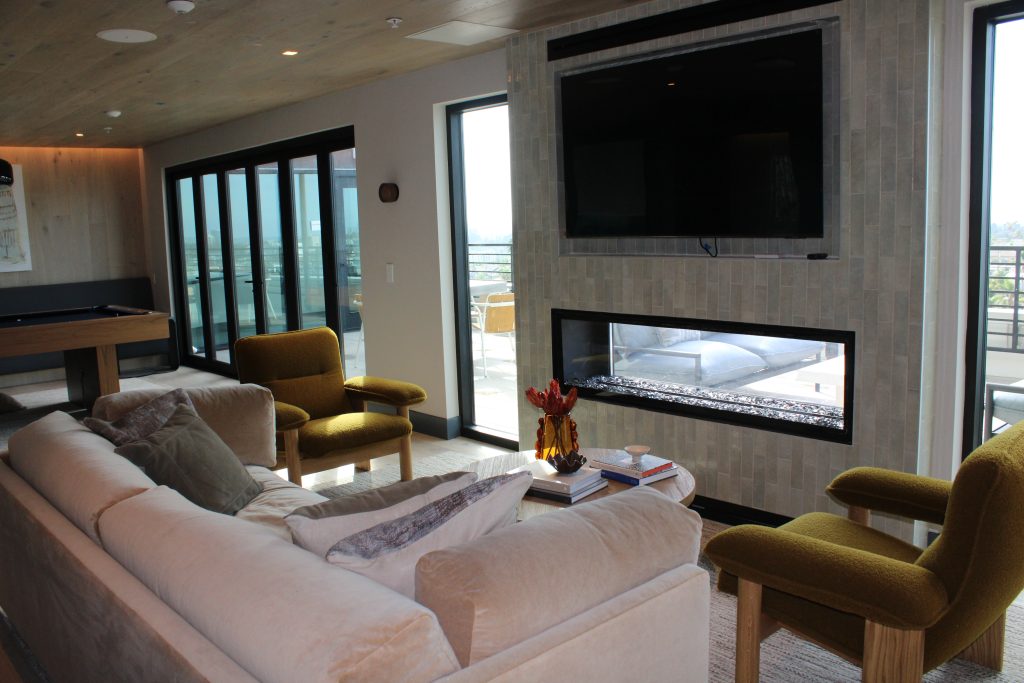 The property features a range of contemporary floor plans, complemented by an impressive lineup of amenities, including a rooftop clubhouse with sweeping San Diego views, double-height lounge spaces, and a two-level fitness center equipped with cutting-edge technology. Indoor-outdoor access, fire tables, kitchenettes, and artful common areas create a seamless connection between comfort, community, and design.
